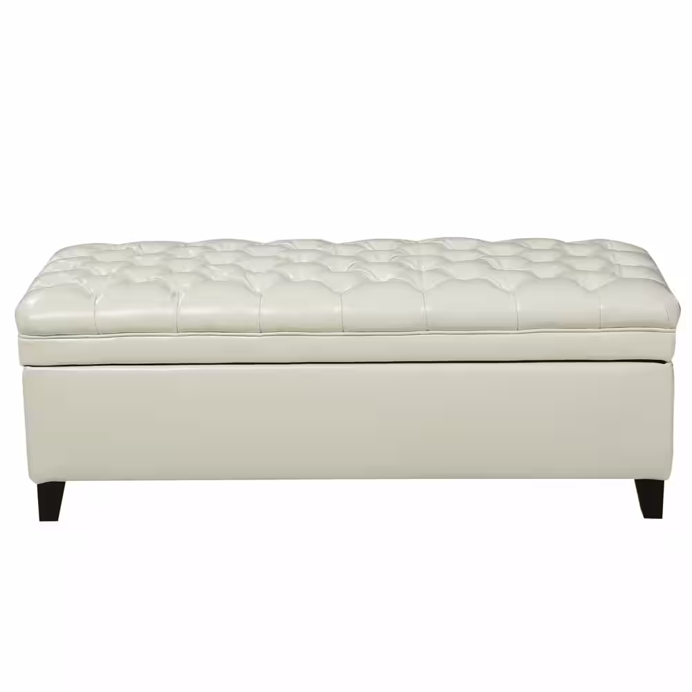 Noble House Juliana Tufted Ivory PU Leather Storage Bench
