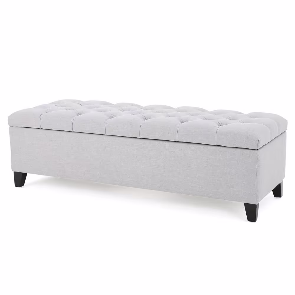 Noble House Light Gray Tufted Fabric Storage Bench