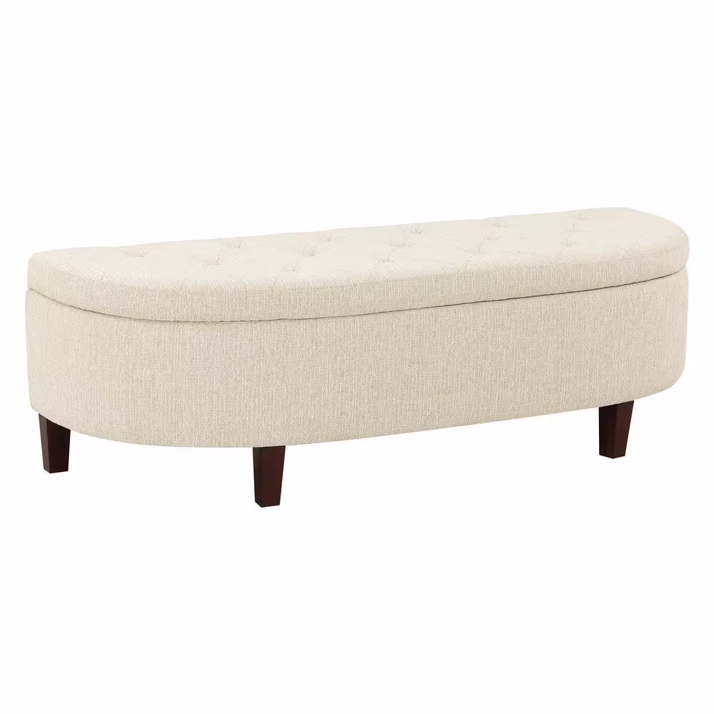 Noble House Tatiana Wheat Beige Polyester Storage Bench with Studs