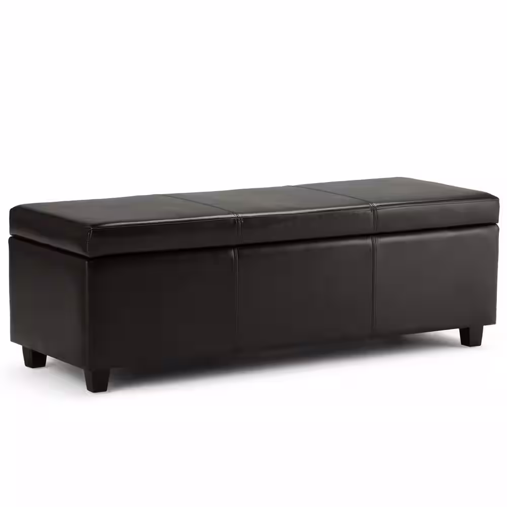 Simpli Home Avalon 48 in. Contemporary Storage Ottoman in Tanners Brown Faux Leather