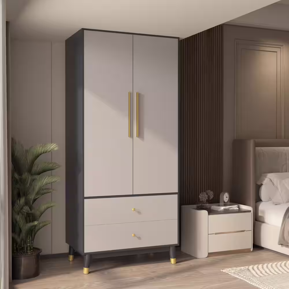 None Gray Armoire with 2-Drawers, Hanging Rod and Gold Metal Handles 70.9 in. H x 19.1 in. W x 31.5 in. D