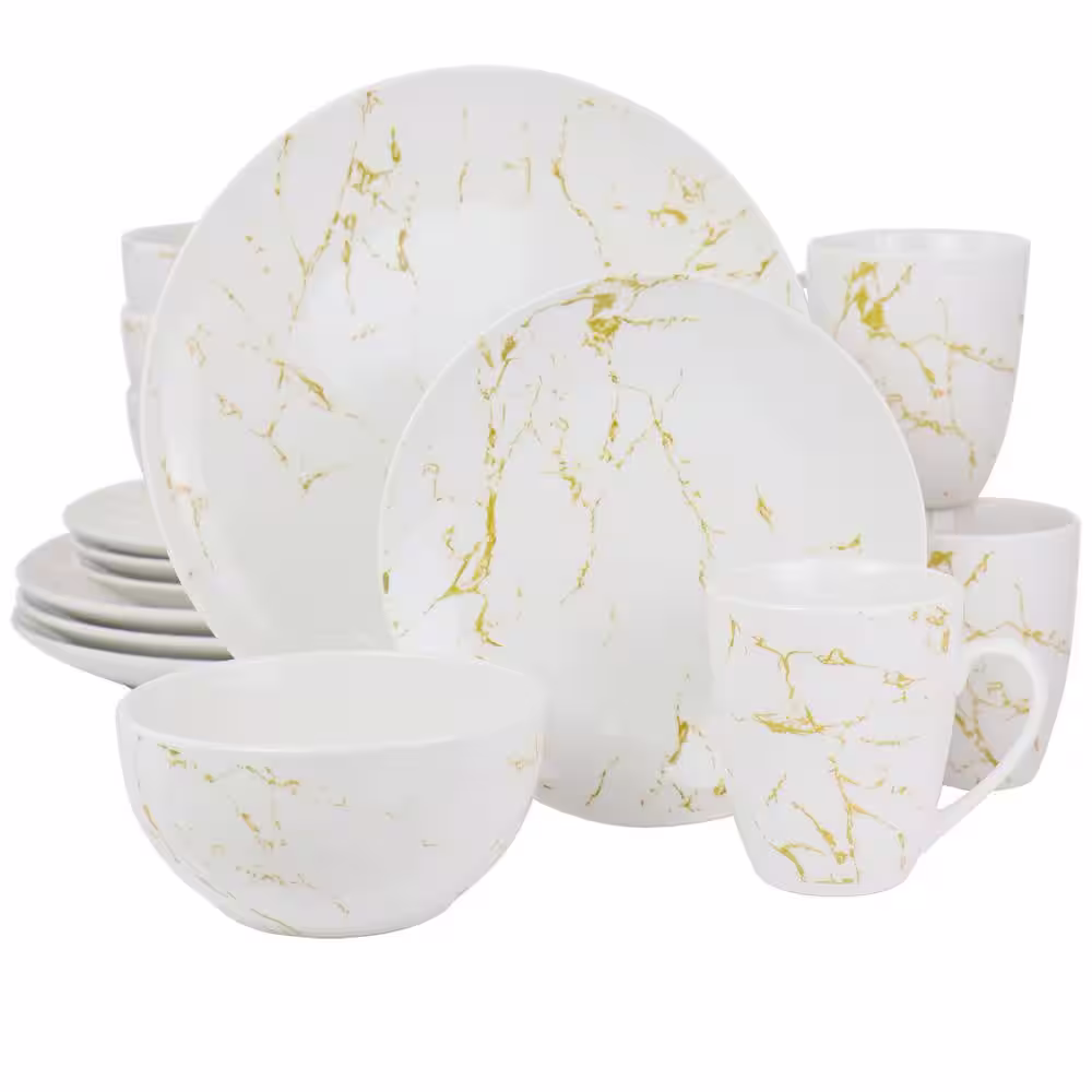 Elama Fine Marble 16-Piece Gold and White Stoneware Dinnerware Set (Service for 4)