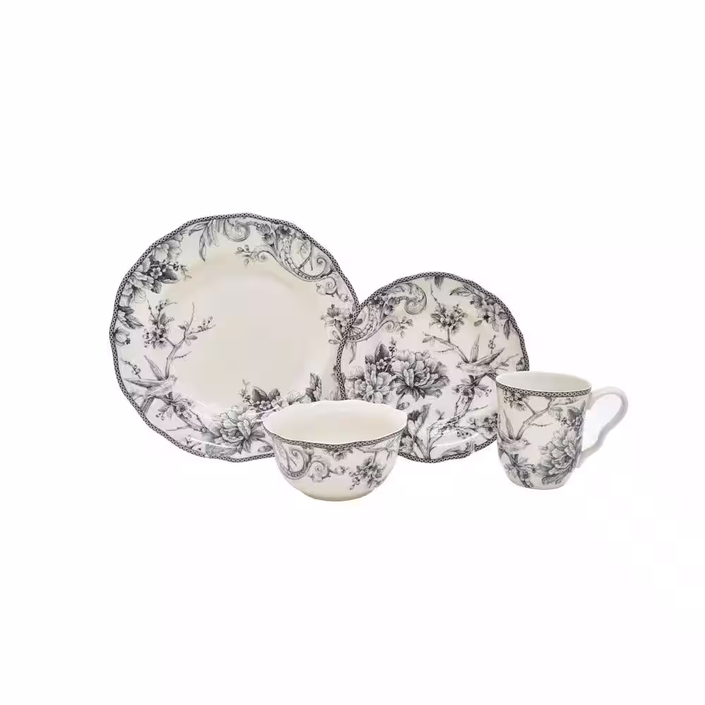 222 Fifth Adelaide 16-Piece Casual Grey Porcelain Dinnerware Set (Service for 4)