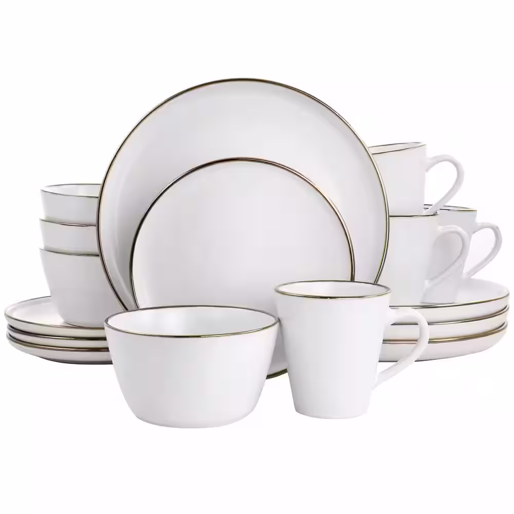 Elama Arthur 16-Piece Stoneware Dinnerware Set in Matte White with Gold Rim