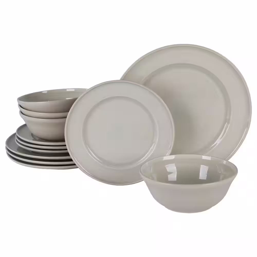 Martha Stewart Living 12-Piece Reactive Glaze Sharkey Grey Stoneware Dinnerware Set (Service for 4)
