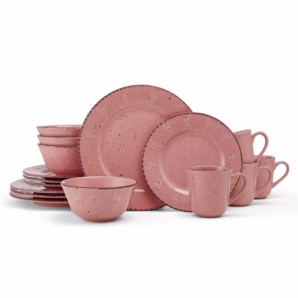 Pfaltzgraff 16-Piece Pink Flamingo Stoneware Dinnerware Set (Service For 4)