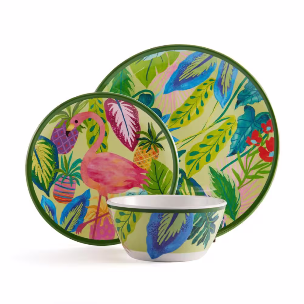 FITZ and FLOYD Flamingo Fling 12-Piece Melamine Dinnerware Set