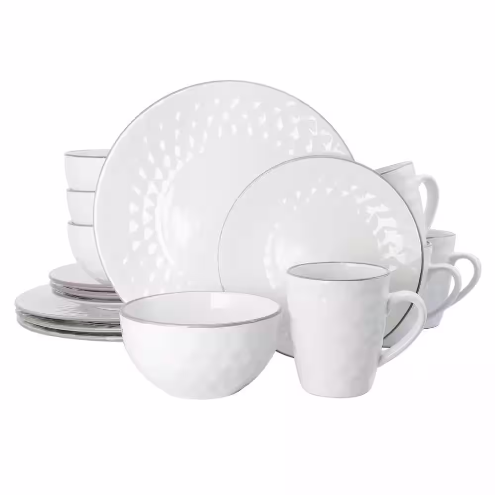 Elama Medici Pearl 16-Piece Casual White Stoneware Dinnerware Set (Service for 4)