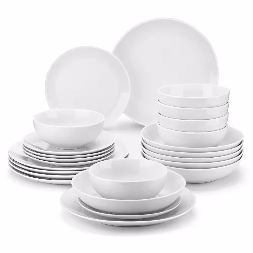 MALACASA Amelia 24-Piece White Porcelain Dinnerware Set, Service For 6