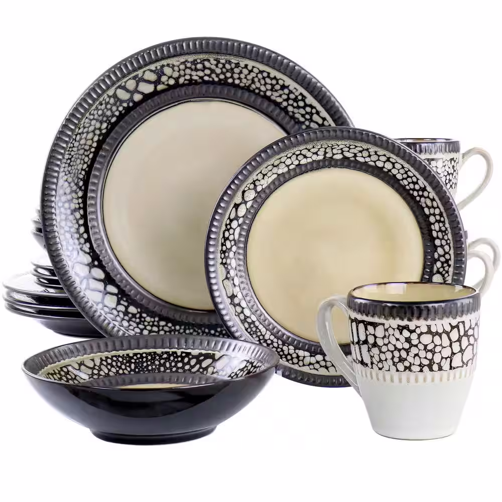 Elama Desert Sand 16-Piece Stoneware Dinnerware Set