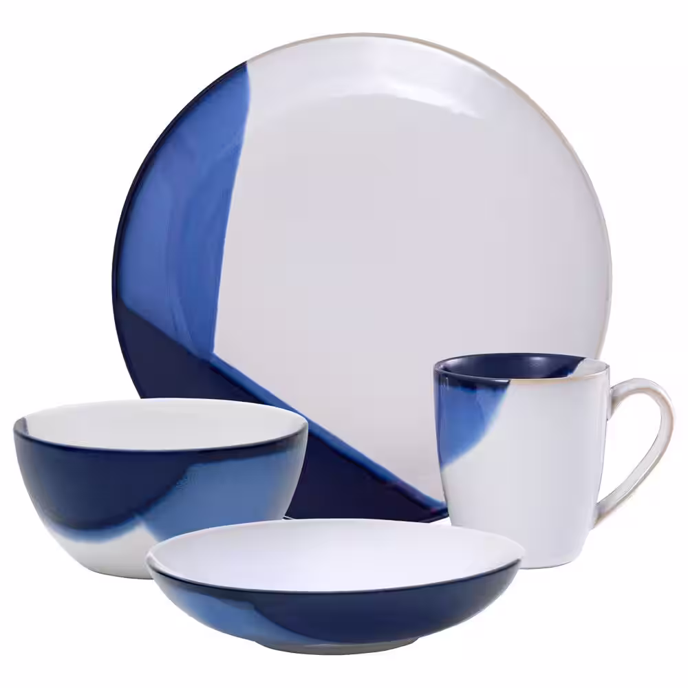 Gourmet Basics by Mikasa Caden 16-Piece Casual Blue and White Stoneware Dinnerware Set (Set for 4)