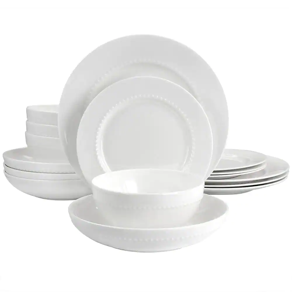 None Embossed Bone China 16-Piece Double Bowl Dinnerware Set in White