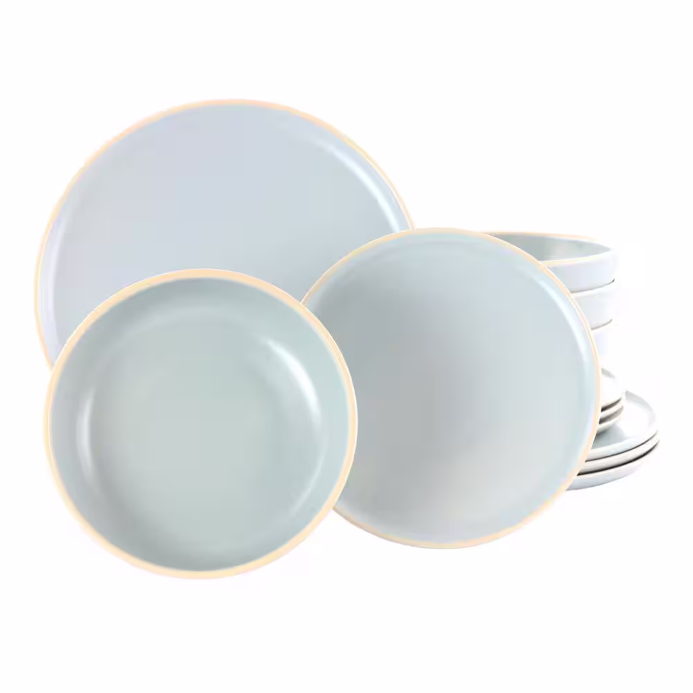 GIBSON ELITE Serenade 12 Piece Round Stoneware Dinnerware Set in Light Blue