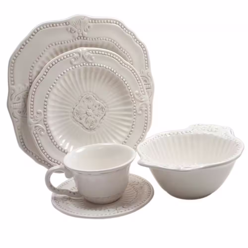 American Atelier Baroque 20-Piece Formal White Earthenware Dinnerware Set (Service for 4)