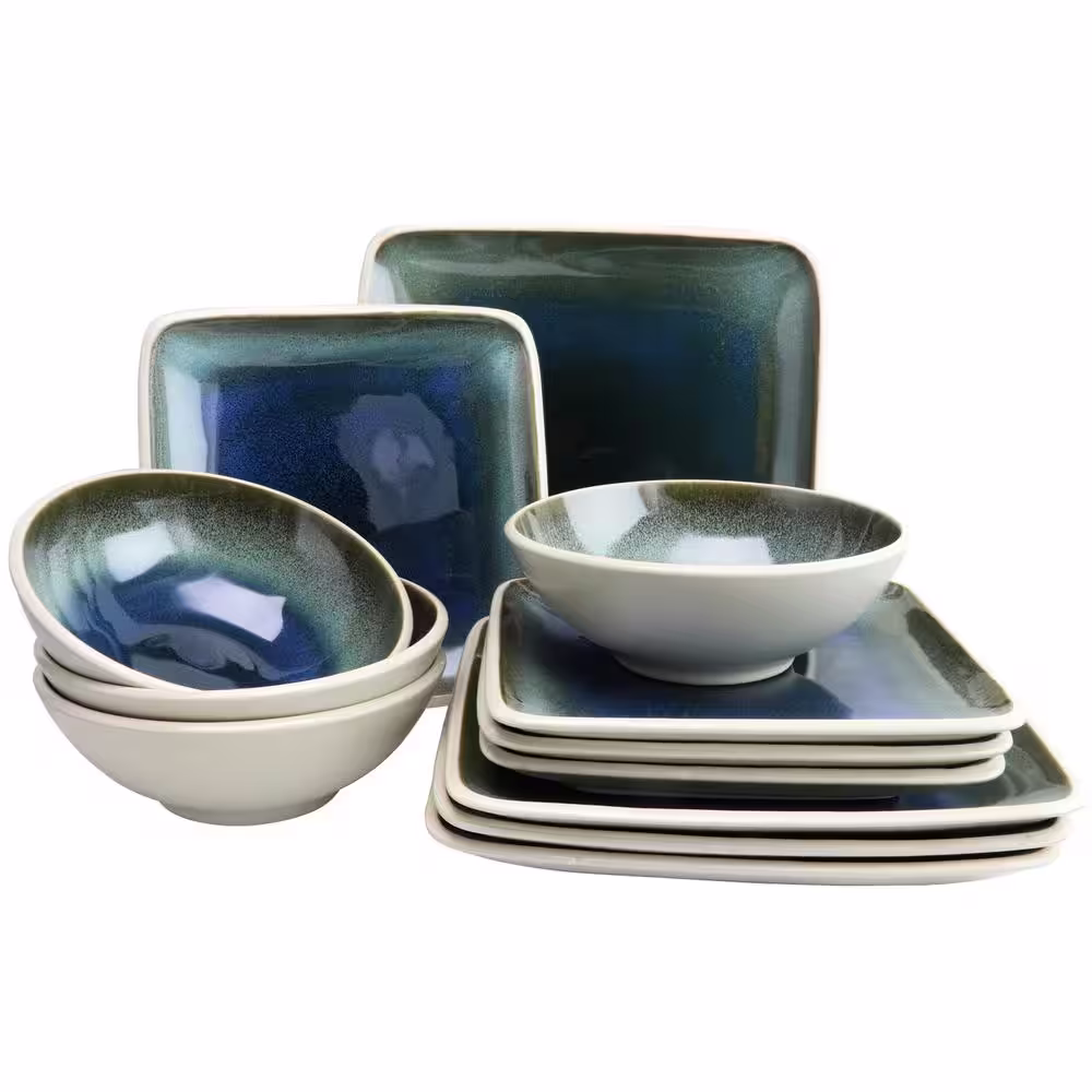 GIBSON ELITE Namastay 12-Piece Blue Square Dinnerware Set