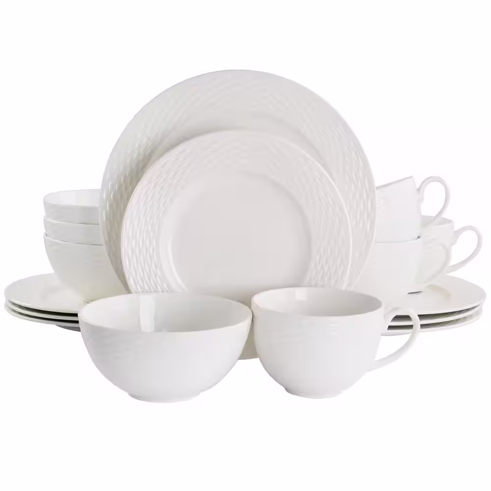 MARTHA STEWART 16 Piece In White Textured Dinnerware Set Fine Ceramic