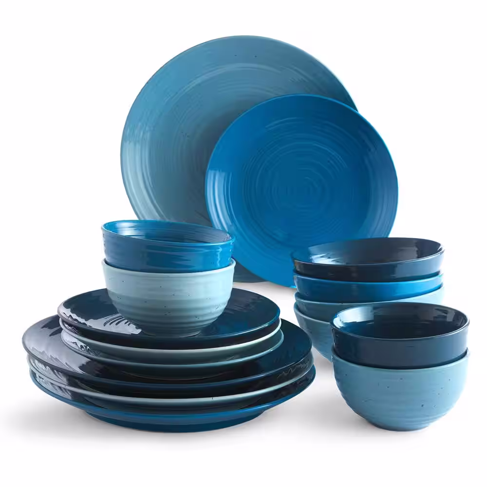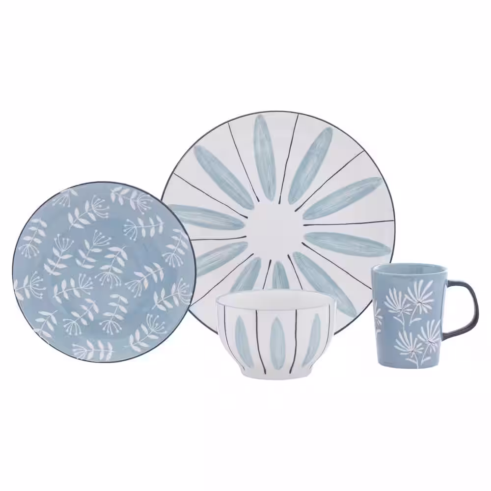 BAUM Vaughn Blue 16-Piece Stoneware Dinnerware Set Service for 4-People