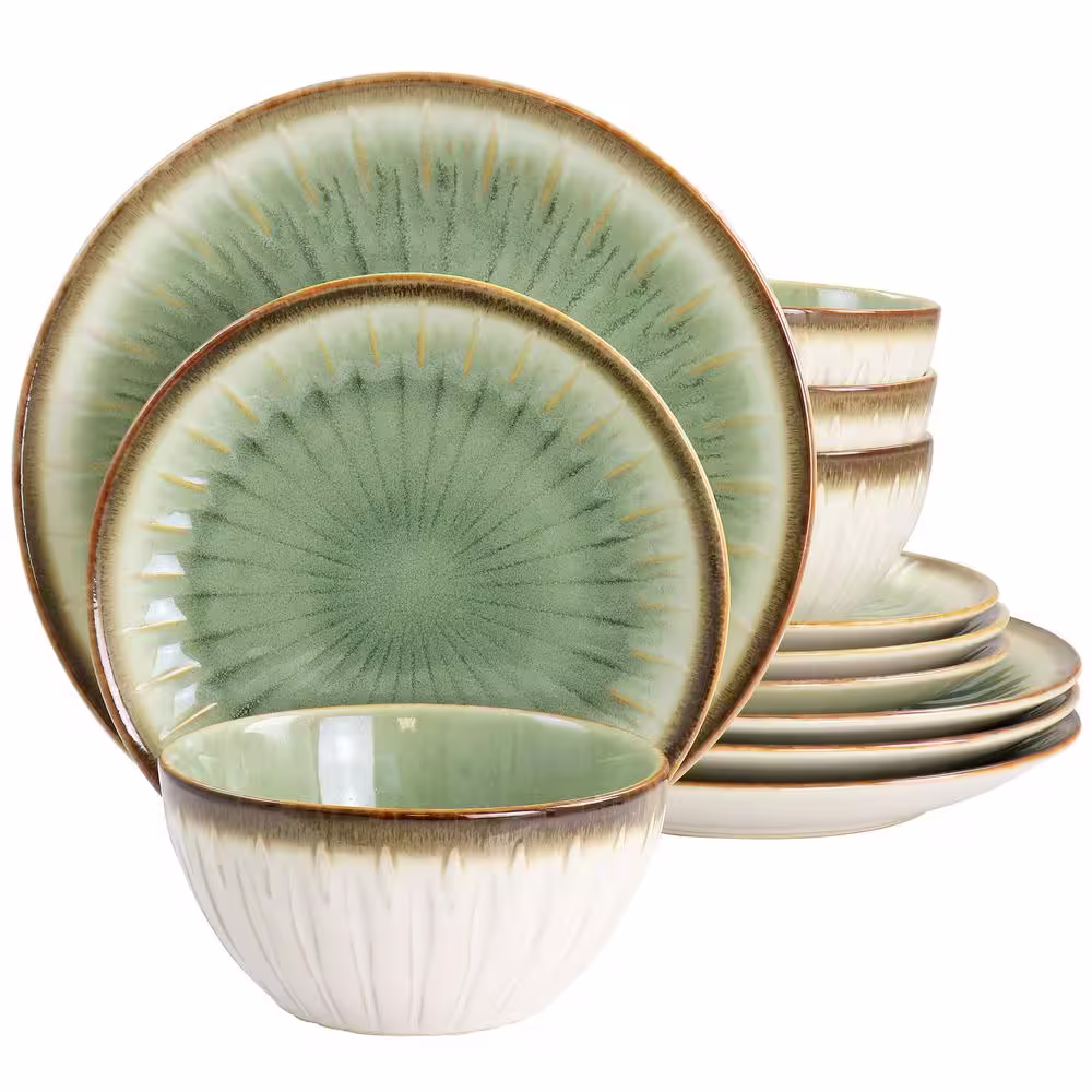 None Mayfair Bay 12-Piece Stoneware Dinnerware Set in Green