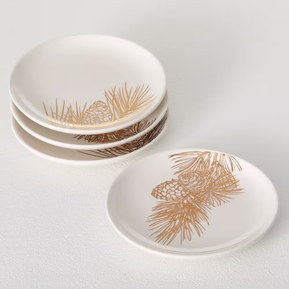 SULLIVANS 8 in. Gold Pine Snack Plate - Set of 4; White