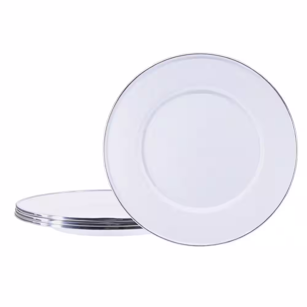 Golden Rabbit 8.5 in. Solid White Enamelware Round Sandwich Plate Set of 4