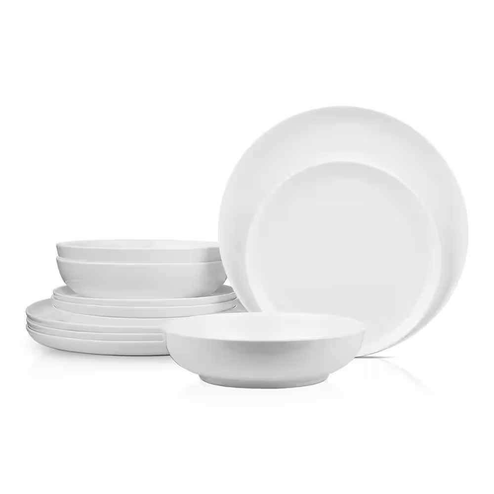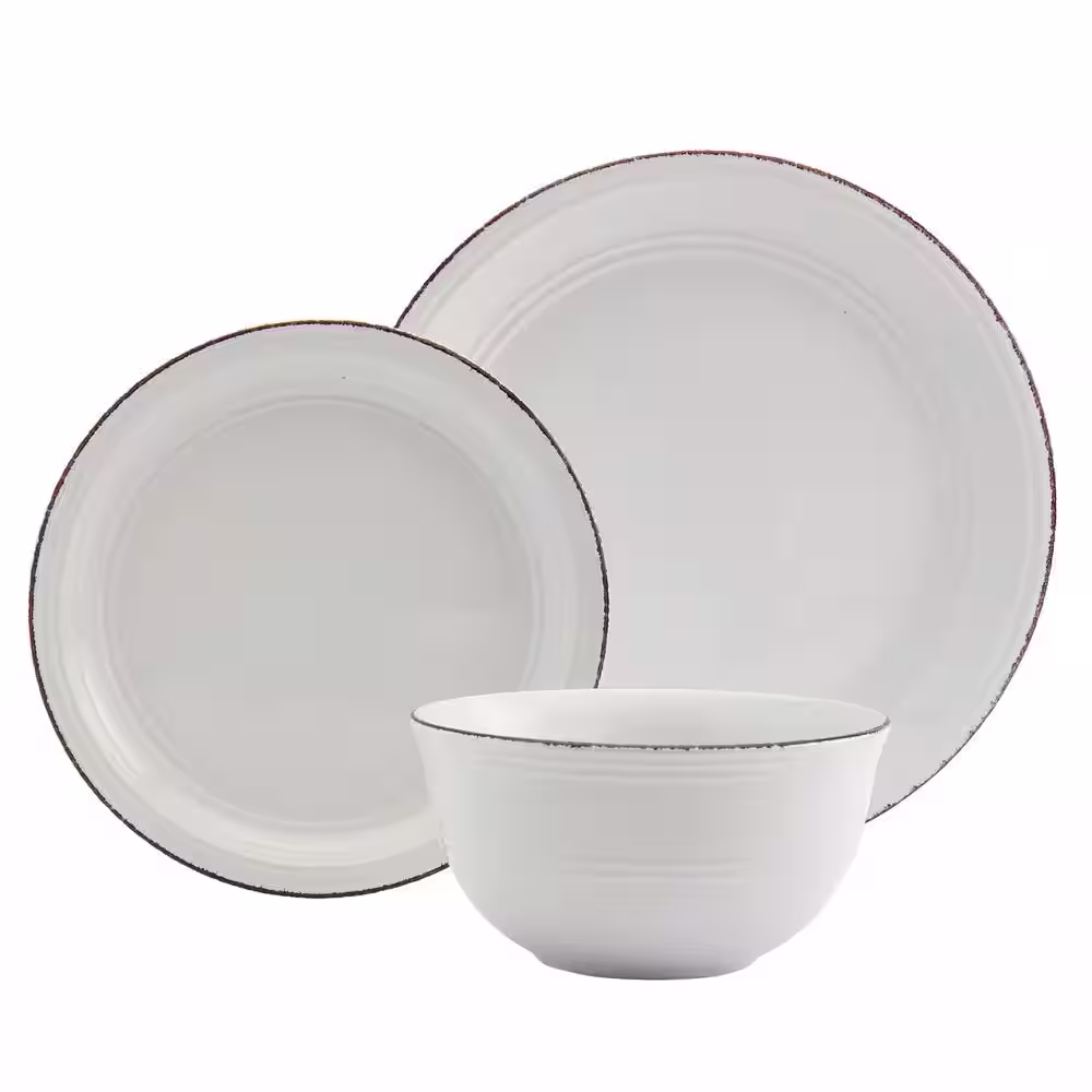 Tabletops Gallery Farmhouse 12-Piece White Dinnerware Set (Service for 4)