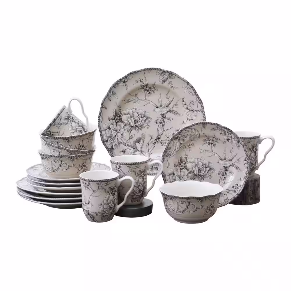 222 Fifth Adelaide 16-Piece Traditional Antique White Porcelain Dinnerware Set (Service for 4)