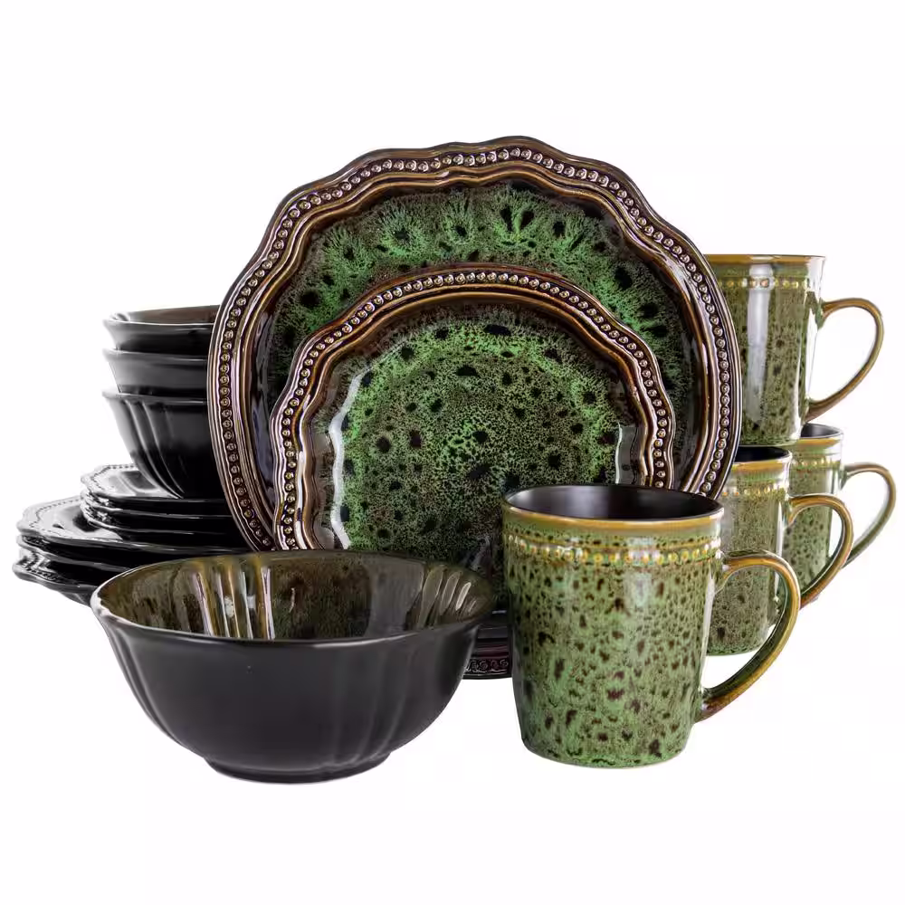 Elama 16-Piece Jade Waves Green Stoneware Dinnerware Set (Service for 4)