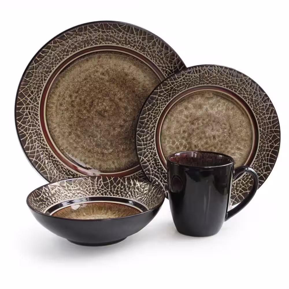 American Atelier Markham 16-Piece Casual Black/Brown Stone Dinnerware Set (Service for 4)