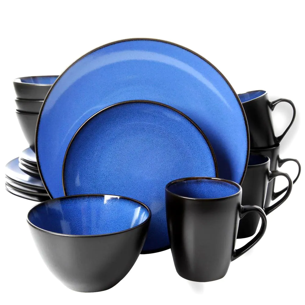 Gibson Soho Lounge 16-Piece Contemporary Blue Ceramic Stone Dinnerware Set (Service for 4)