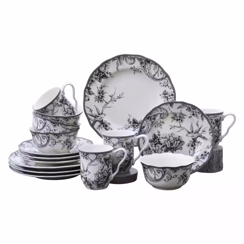 222 Fifth Adelaide 16-Piece Black Porcelain Dinnerware Set