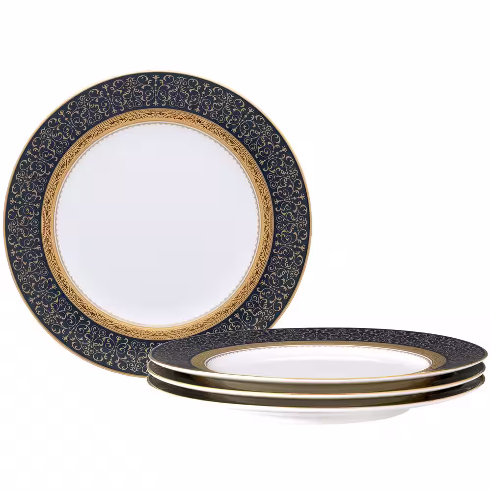 Noritake Odessa Cobalt Gold 9 in. White Bone China Accent Plates Set Of 4