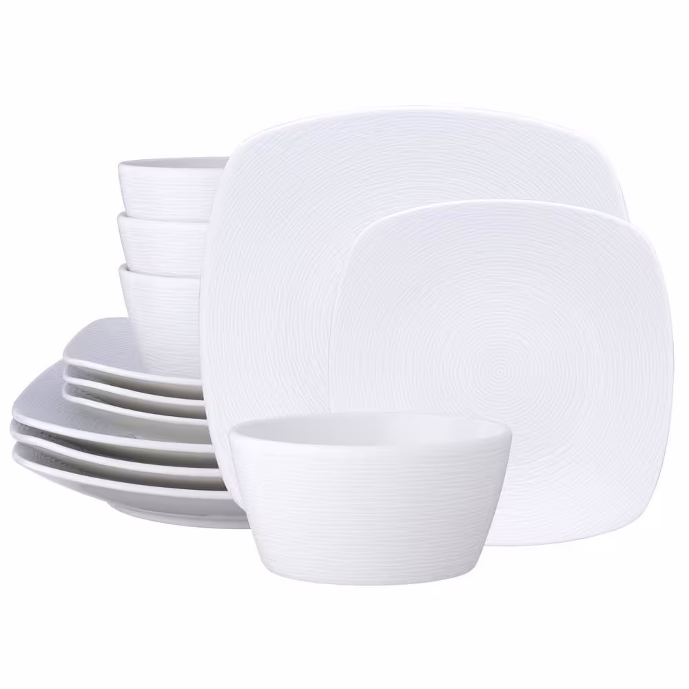 Noritake Colorscapes White-on-White Swirl Porcelain 12-Piece Square Dinnerware Set (Service for 4)
