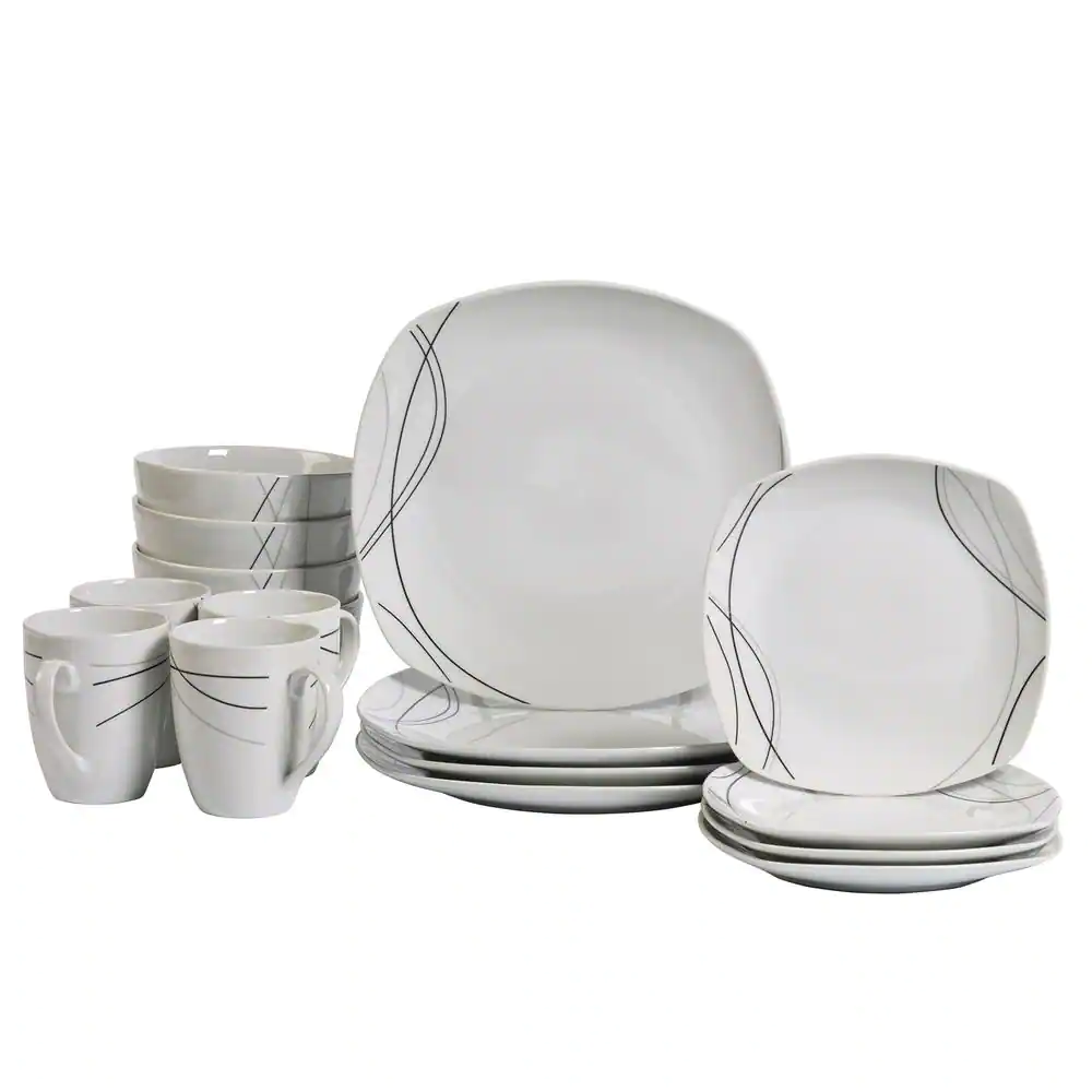 Tabletops Gallery Alec 16-Piece Casual White with Black Design Ceramic Dinnerware Set (Service for 4)