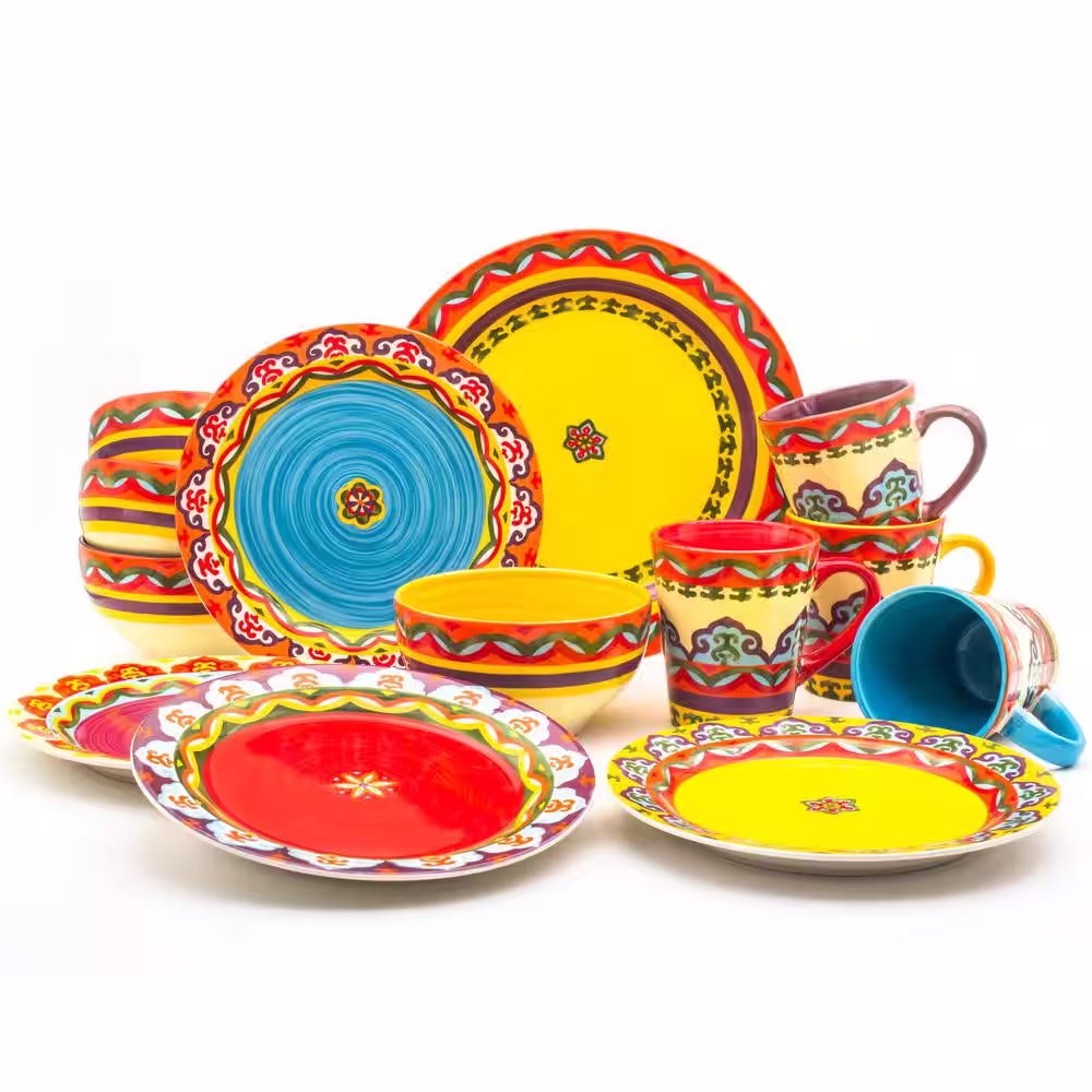Euro Ceramica Galicia 16-Piece Patterned Multicolor Ceramic Dinnerware Set (Service for 4)