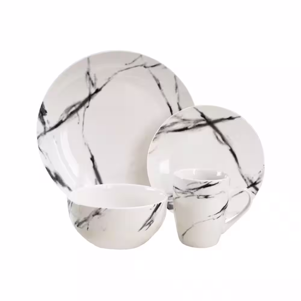 American Atelier Marble 16-Piece Contemporary Black and White Porcelain Dinnerware Set (Service for 4)