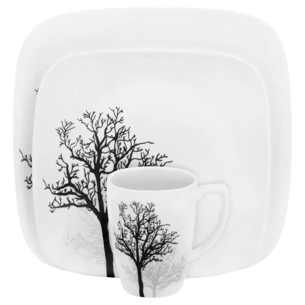 Corelle Square 16-Piece Seasonal Black Trees Glass Dinnerware Set (Service for 4)