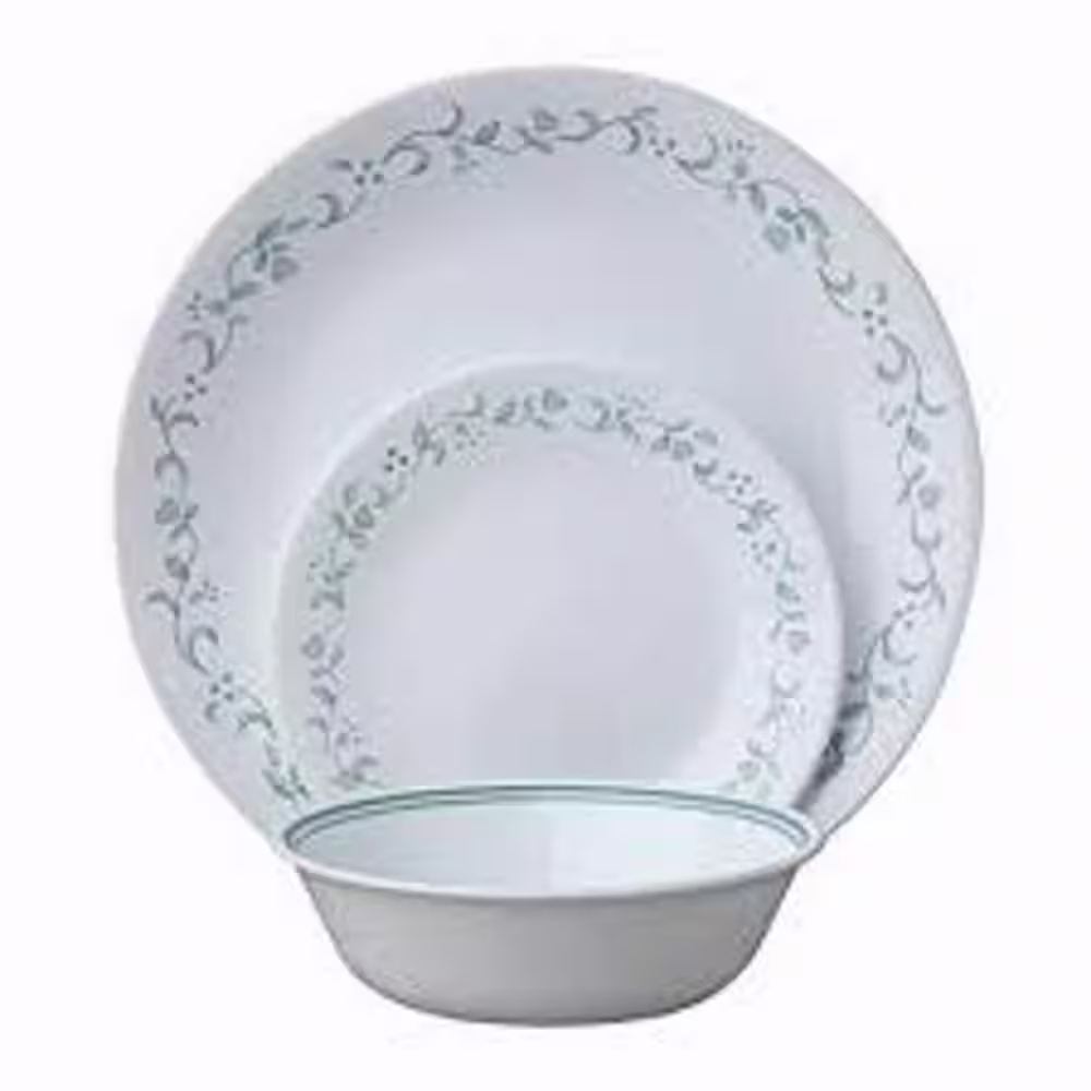 Corelle Country Cottage 18-piece Glass Dinnerware Set, Service for 6, White and Blue