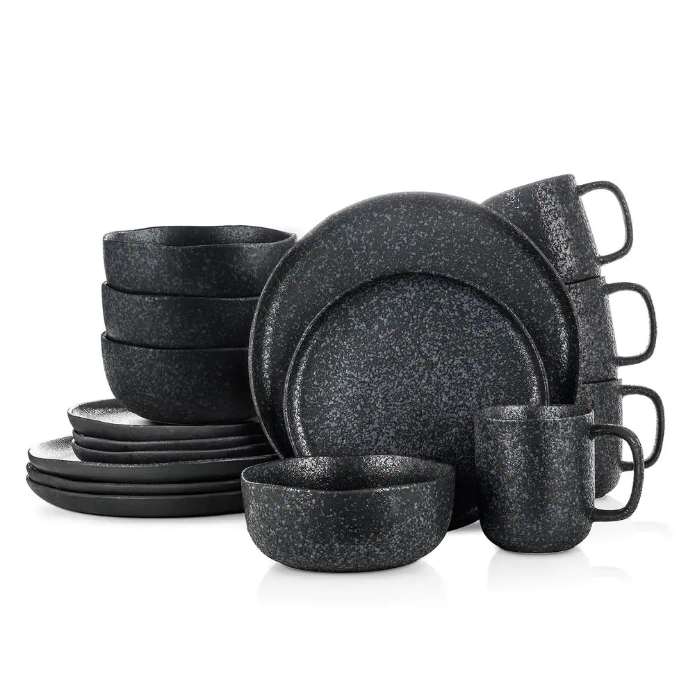 STONE LAIN Stone Lain Tom 16-Piece Dinnerware Set Stoneware, Service For 4, Black and White Reflection