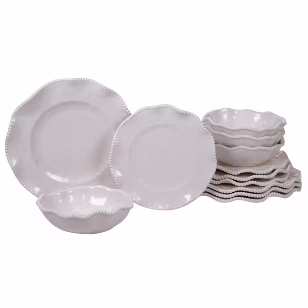Certified International Perlette 12-Piece Solid Cream Melamine Outdoor Dinnerware Set (Service for 4)