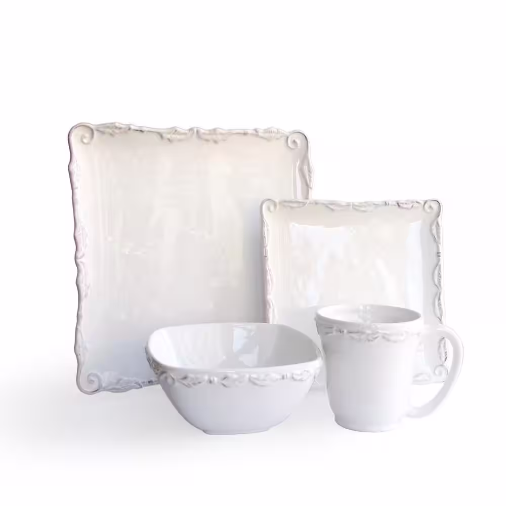 Elama Ivory Lotus 16-Piece Traditional White Stoneware Dinnerware Set (Service for 4)