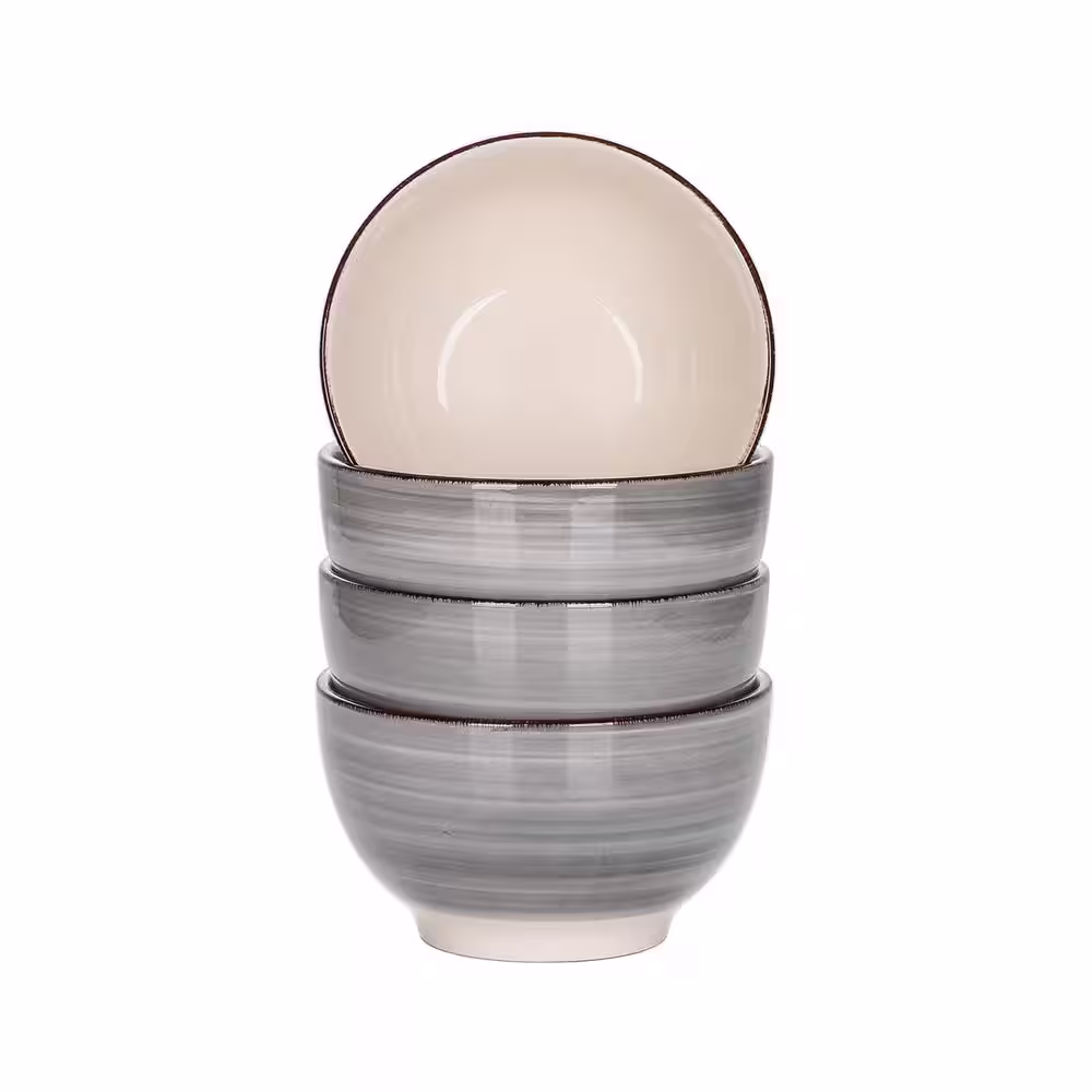 vancasso Series Bella 5.5 in. Cereal Bowl Porcelain in Vintage Look Gray Dinnerware Set (Service for 4)