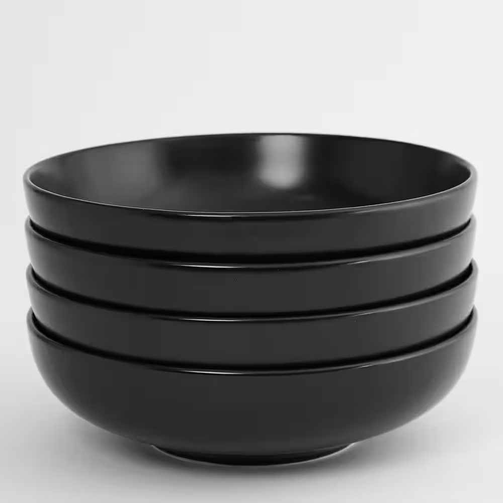 Euro Ceramica Euro Essential 52 fl. oz. Black Semi-Matte Stoneware Bistro Bowl Set of 4