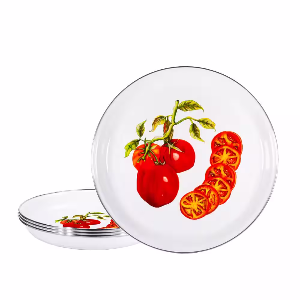 Golden Rabbit 10 in. Tomatoes Enamelware Pasta Plate Set of 4