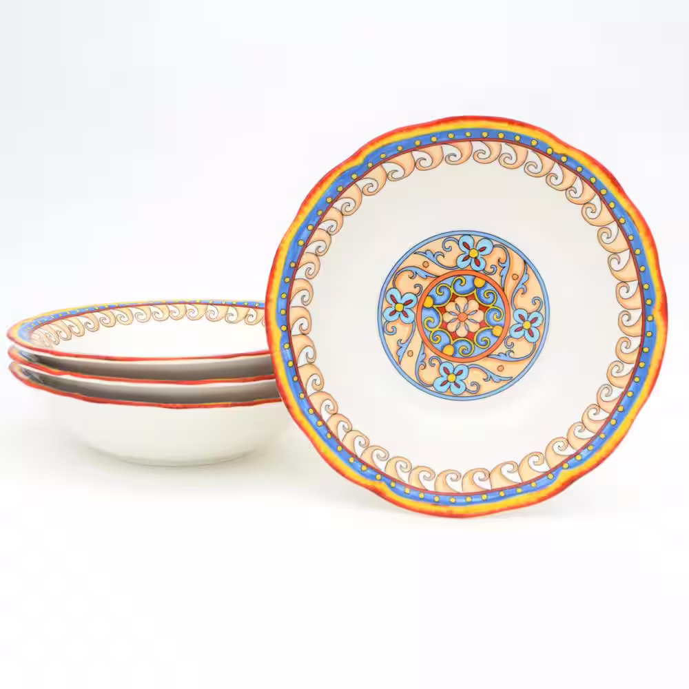 Euro Ceramica Duomo 34 oz. Multicolor Stoneware Pasta Bowl (Set of 4)