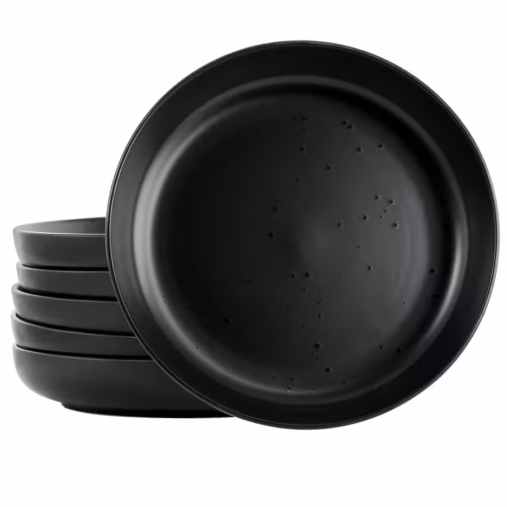None Landon 24 fl. oz. 9.5 in. Pepper Black Round Stoneware Dinner Bowl (Set of 6)