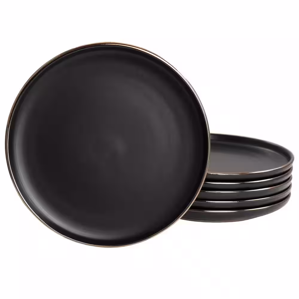 Elama Paul 6 Piece Stoneware Salad Plate Set in Matte Black with Gold Rim