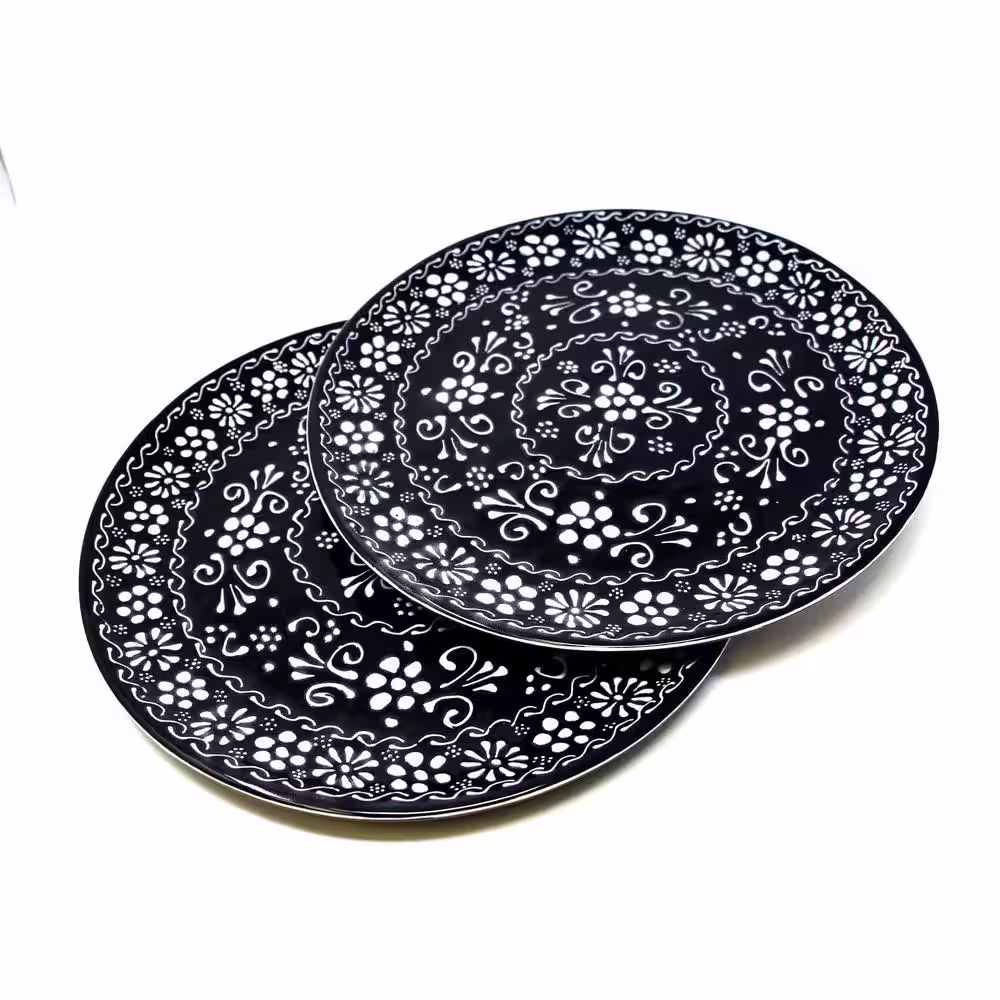 None Mexican Ink Pottery Set of Large Dinner Plates