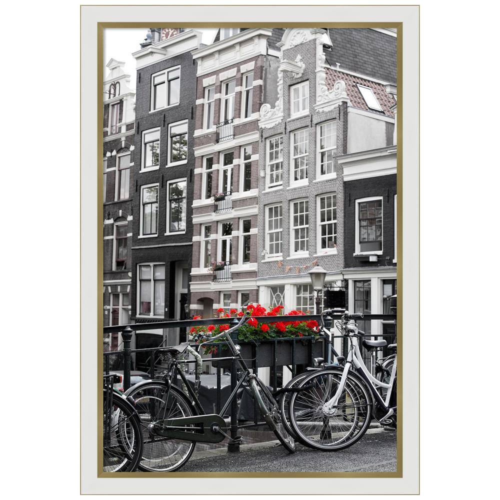 Amanti Art Eva White Gold Narrow Picture Frame Opening Size 24 x 36 in.