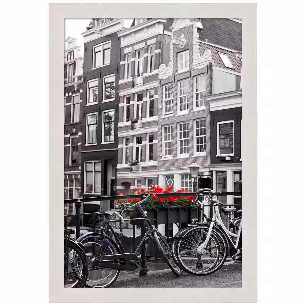 Amanti Art Opening Size 24 in. x 36 in. Rustic Plank White Narrow Picture Frame