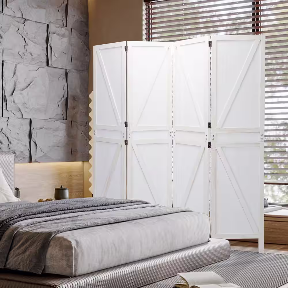 None 4-Panel White Wood Privacy Room Divider Solid Folding Wall Room Divider Screens Partial Partition in Deep Burnt Aged
